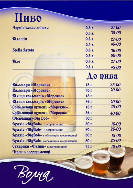 Khvylya Menu